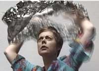 Vol d'aluminium (7'49'') L'aluminium tourne autour du corps en spirales. Dans le mouvement la matière se fluidifie. |